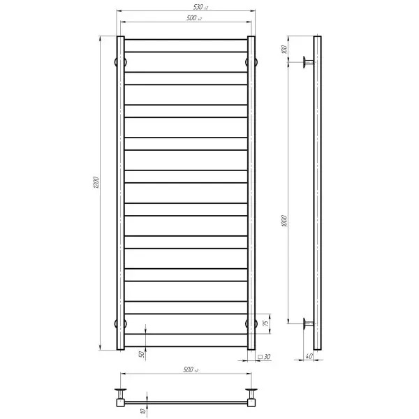 Radiator pentru baie din oțel inoxidabil (Inox), dimensiuni 500x1200, finisaj crom lucios. Se montează pe perete și asigură încălzirea eficientă a băii și uscarea prosoapelor. Modelul funcționează pe apă, cu posibilitate de dotare suplimentară cu TEN electric compatibil.