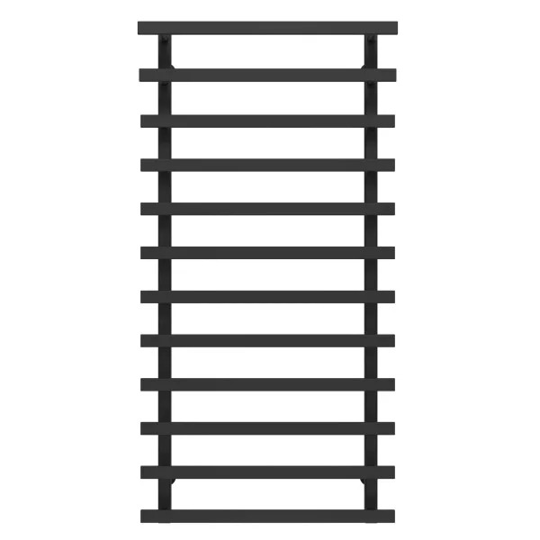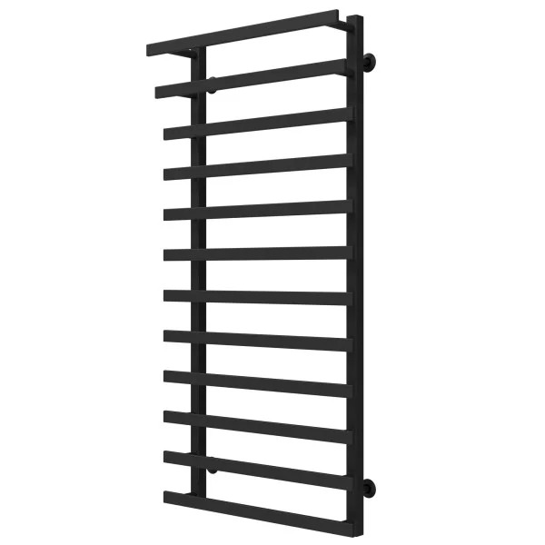 Radiator pentru baie din oțel inoxidabil (Inox), dimensiuni 500x1200, finisaj negru mat. Se montează vertical pe perete şi oferă funcţie de încălzire ambiantă şi uscarea prosoapelor. Modelul este alimentat cu agent termic (apă); opţiunea electrică nu este inclusă.