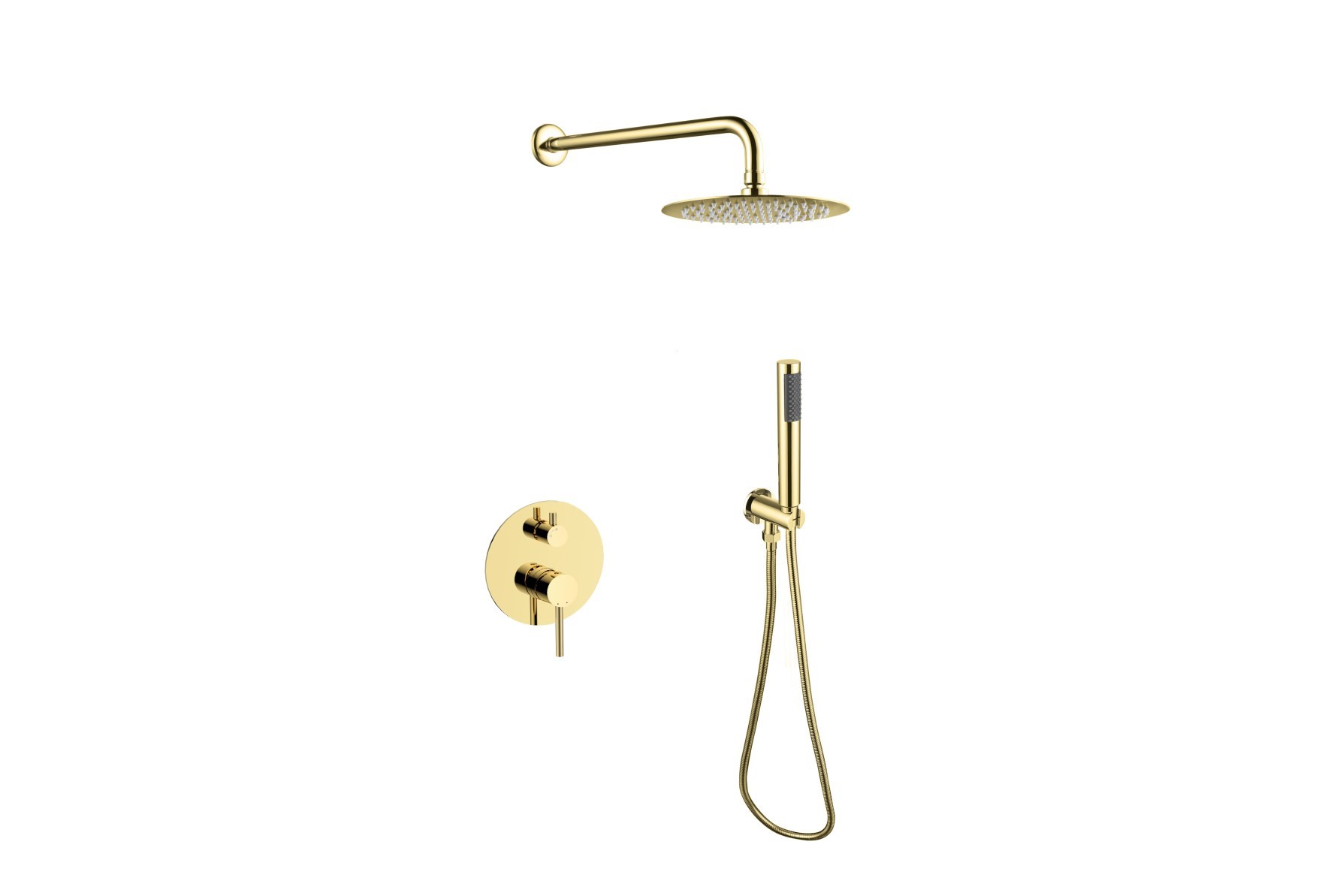 Sistemul de duș încastrat Besco Decco/Illusion II BP-DIII-ZL combină eleganța designului cu fiabilitatea tehnică. Fabricat integral din alamă, cu finisaj auriu ușor de întreținut, oferă durabilitate și aspect rafinat. Capul de duș ultrafin Ø200 mm asigură un jet uniform în modul „Ploaie tropicală”. Temperatura și debitul se reglează prin baterie monocomandă echipată cu cartuș ceramic Kerox. Setul include duș de mână cu furtun flexibil și suport de perete integrat cu racordul de apă.