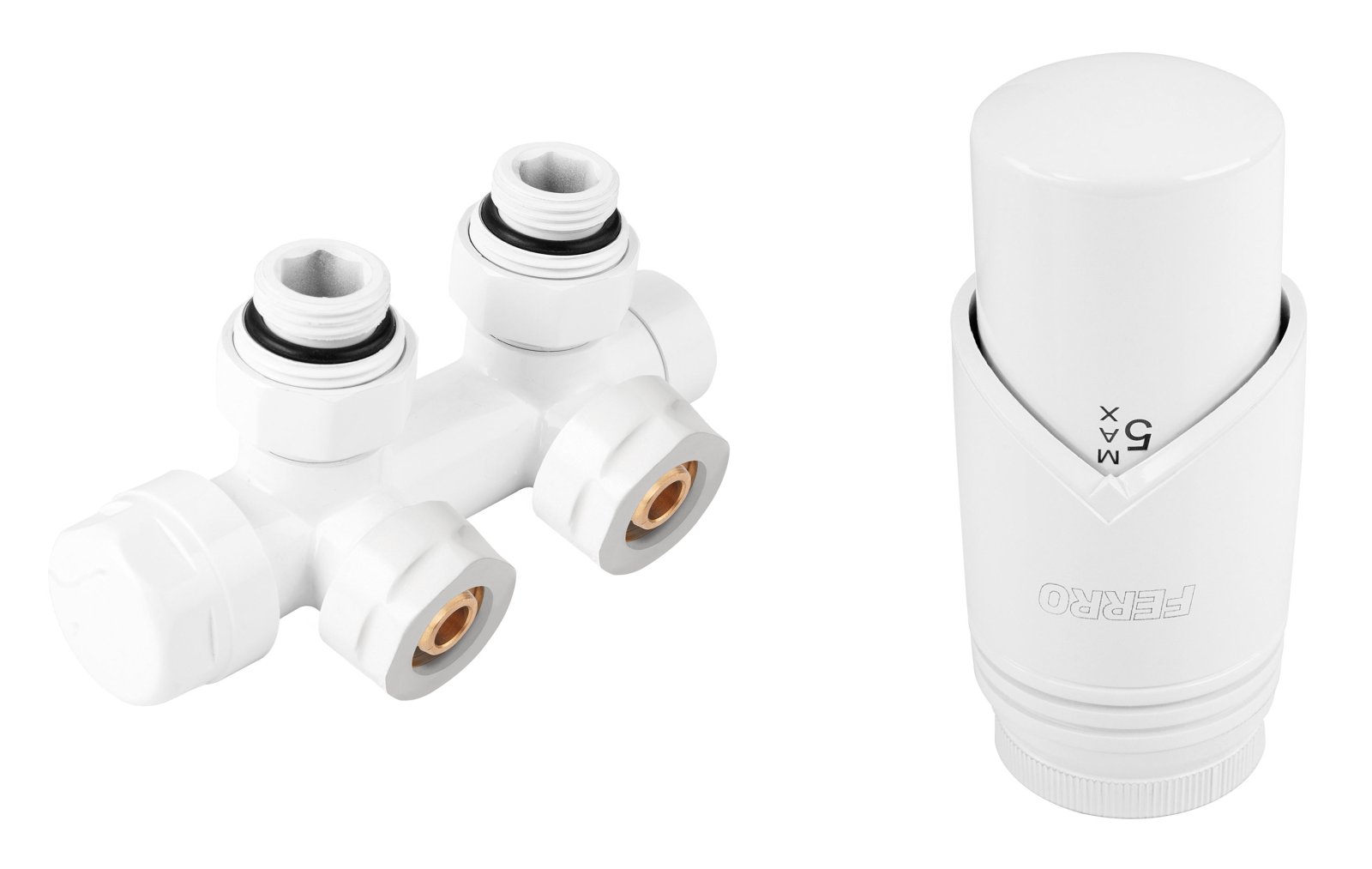 Set robinet dublu coltar pentru radiator tip V, alb