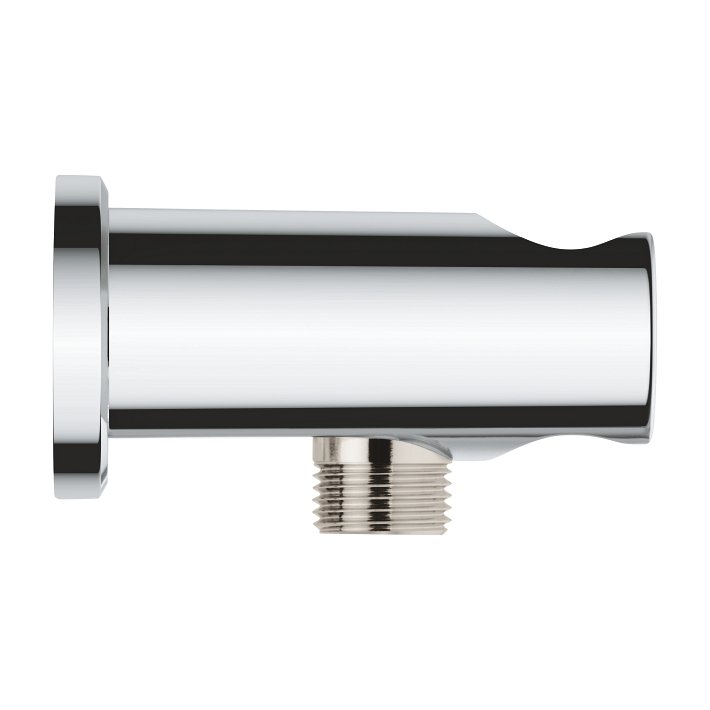 Conexiunea de perete GROHE Rainshower cu suport pentru para de duș este destinată combinării punctului de alimentare cu apă și fixării periei de duș pe perete. Produsul are un corp metalic durabil, iar racordul cu filet exterior G 1/2" asigură compatibilitate cu majoritatea furtunurilor și perelor de duș standard. Rozeta decorativă rotundă cu diametrul de 48 mm completează estetic instalarea și ascunde elementele de montaj. Supapa de protecție împotriva refluxului previne returul apei în sistem. Finisajul GROHE StarLight oferă un aspect cromat durabil și ușor de întreținut.